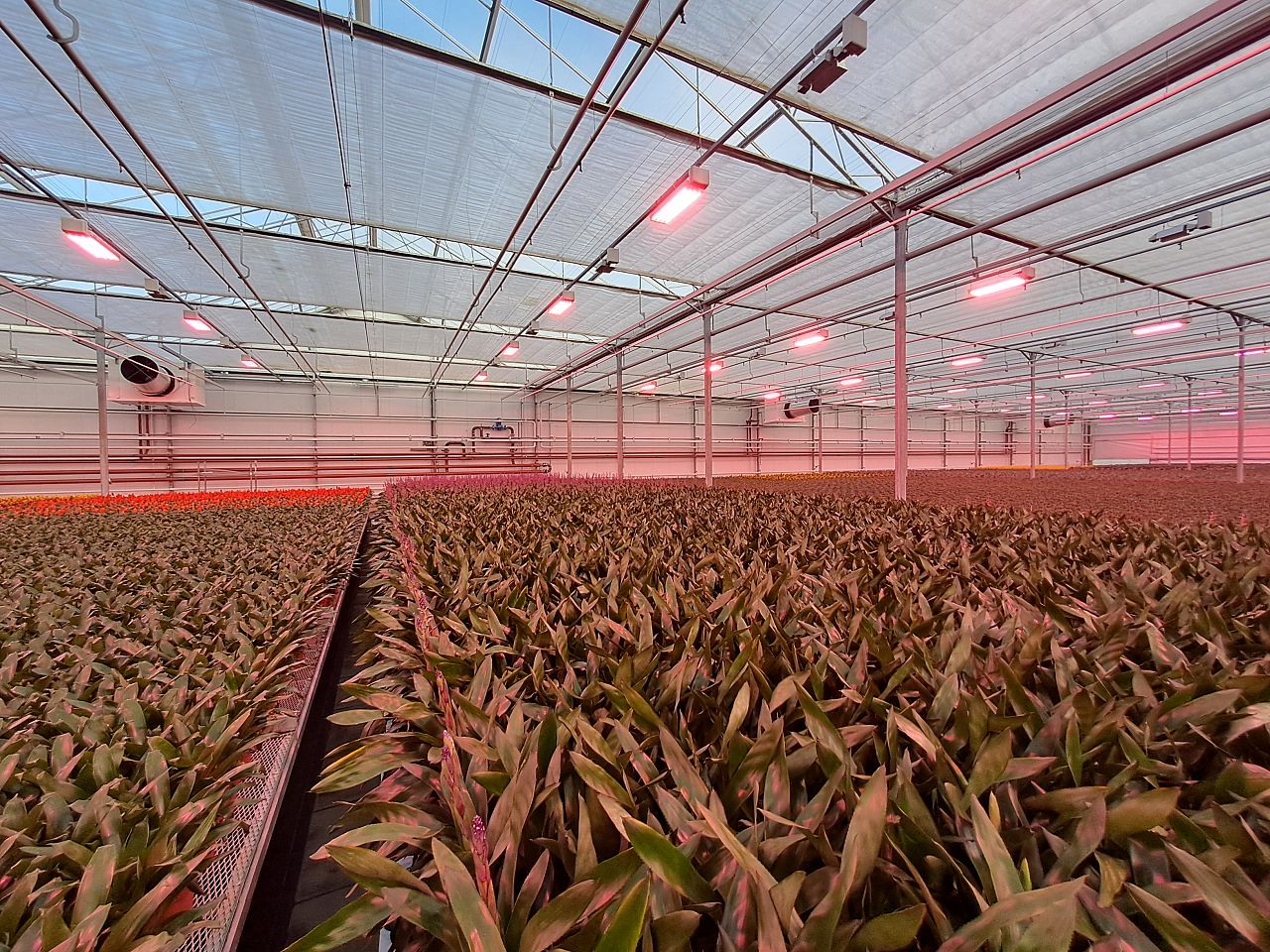 Recent ontwierp en realiseerde Hortivision luchtbehandelingsinstallaties zonder voorverwarming bij Arcadia (chrysant) en Bos Kwekerijen (paprika). Eerder paste Hortivision de innovatie met geïsoleerde luchtverdeelslangen al toe in een tomatenkas, waar de kweker met behulp van buitenlucht ontvochtigt, en in een chrysantenkwekerij, waar het ontvochtigen met de hulp van buitenlucht en directe warmteterugwinning gebeurt. “Ons meest recente project is bij Bunnik Bromelia’s. Hier realiseren we een koelinstallatie specifiek voor ontvochtiging. Dit kunnen we doen zonder voorverwarming van lucht, omdat we de geïsoleerde luchtverdeelslangen toepassen. Naast het gebruik van de geïsoleerde luchtverdeelslang laten we de slangen hier halverwege ook verlopen naar een kleinere diameter.”